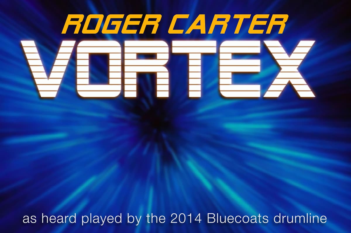 Just in time for the wrap-up of the 2014 DCI season, we’re very proud to welcome Roger Carter to our family of artists with his intricate battery piece Vortex, as heard performed by the 2014 Bluecoats drumline. Vortex is an aggressive marching percussion piece rife with challenging polyrhythmic ideas through a constant 12/8 meter. Extended grooves, sectional…