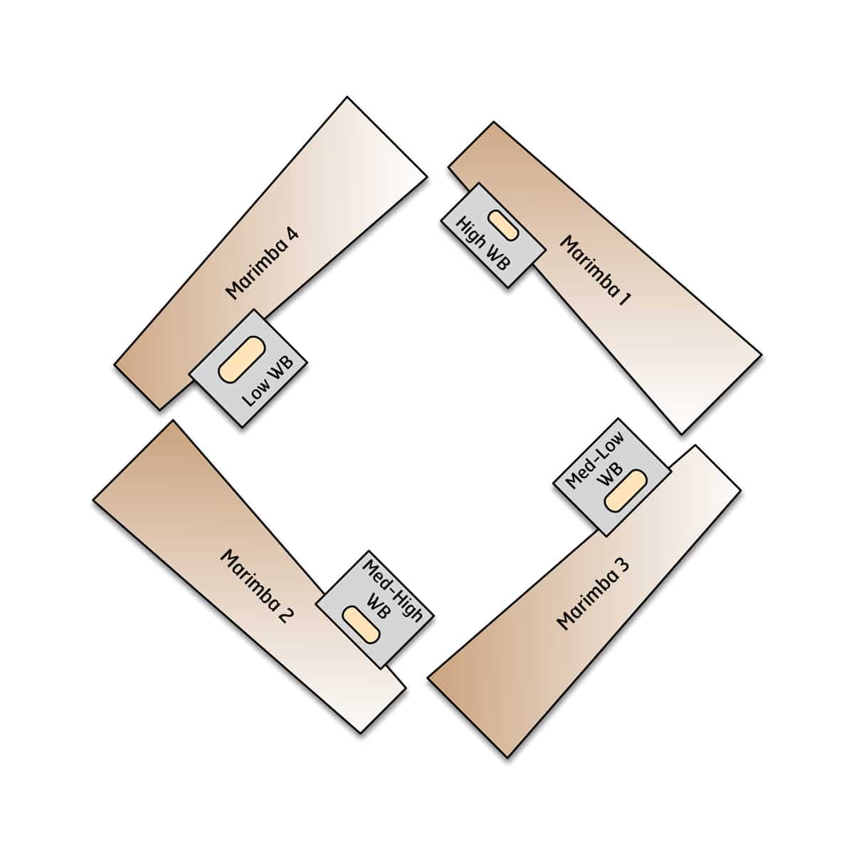 An energetic and masterful work by composer and percussionist Brian Blume, Scenes from the Woods is a quartet written for a circle of marimbas. Additionally, each player is assigned to a differing woodblocks. As Blume states in the program notes, “This piece is a look back at some of the special times I spent in the woods near my parents house: a fast-paced game of tag or hide-and-seek; the quiet moments of solitude and reflection; a mysterious, foggy evening; the sun’s rays slicing through the canopy of trees; and making the most of a rainy day.”