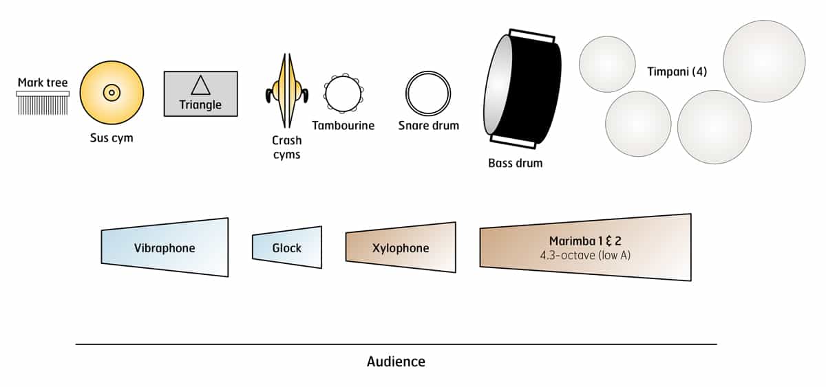 • 1-2 marimbas*— (1) 4-octave, (1) low A