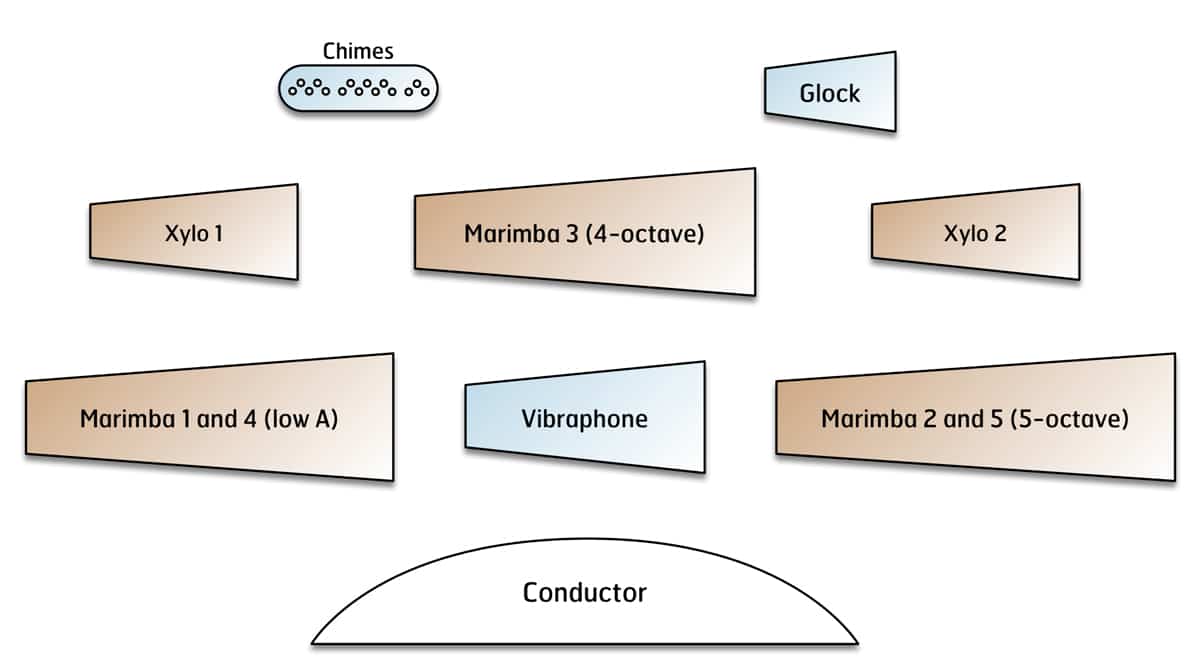 • 3 marimba—(1) 4-octave, (1) low A*, (1) low C**