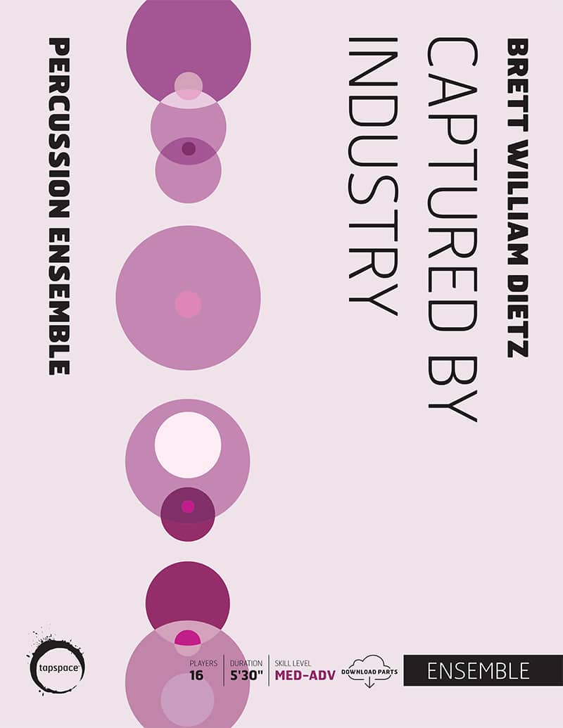 Captured by Industry by Brett William Dietz is a percussion ensemble work for sixteen players that delivers a cinematic and dramatic soundscape inspired by the modern industrial age.