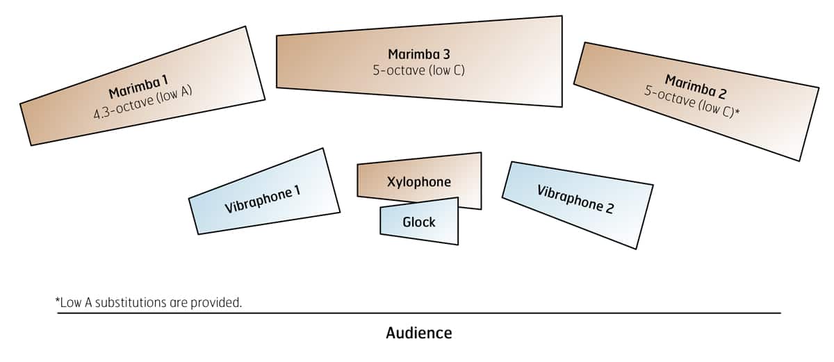 *Low A substitutions are provided for the Marimba 2 part so that this piece can be performed with 2 low A marimbas and 1 low C marimba.