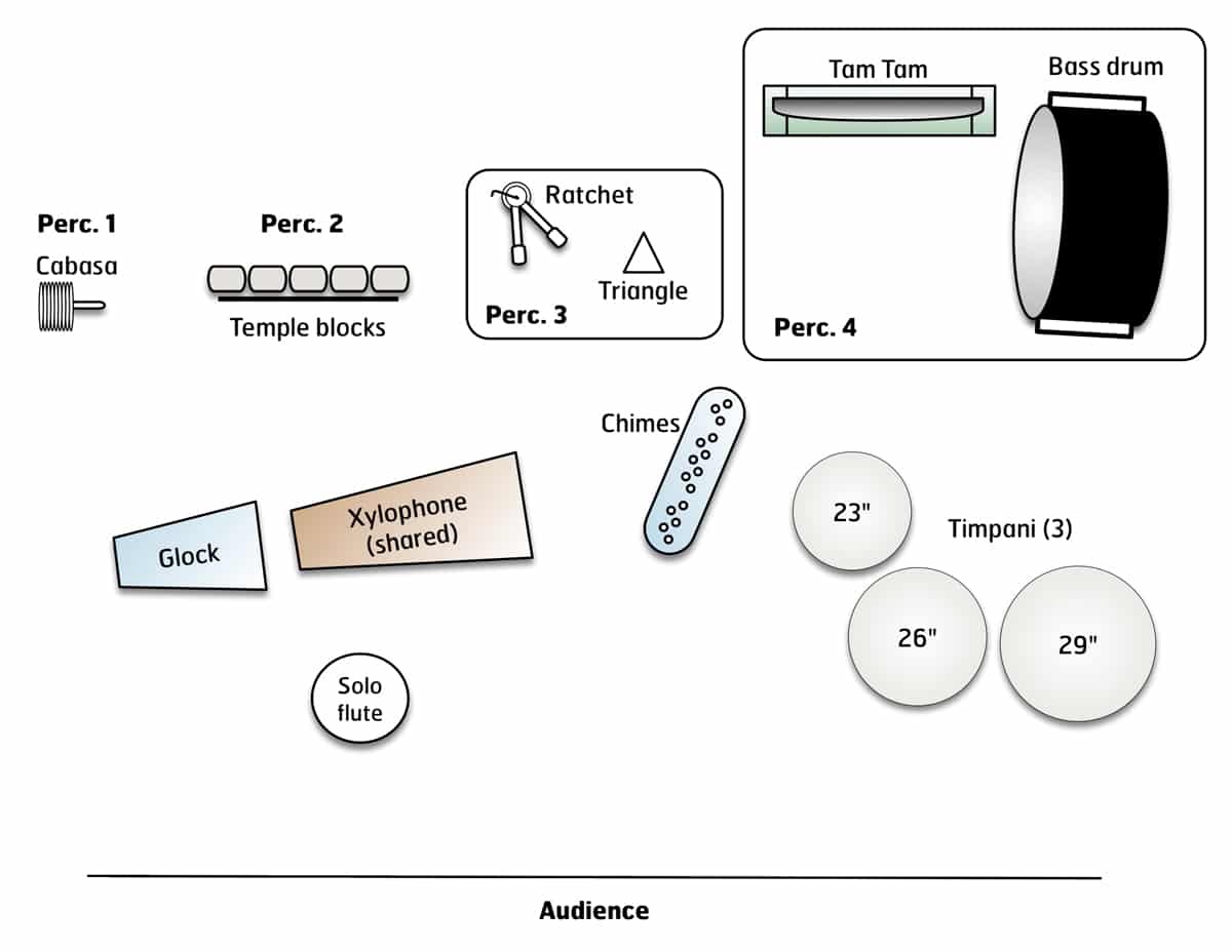 Written for percussion ensemble and solo flute, Clockwork by Stuart P. O’Neil plays on the timbral characteristics found in different types of clocks. Held together by the steady tick-tock of the temple blocks, the piece blends an original flute theme with two iconic clock chimes. This medium-easy arrangement concludes with overlapping ostinati at the players’ independent tempi. The effect—imagine being in a clock shop at the top of an hour—is a great opportunity to share a more contemporary compositional device with your ensemble.