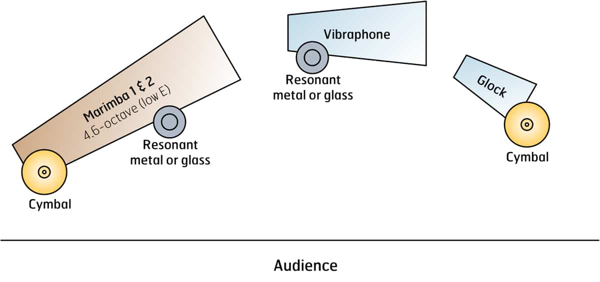 Thomas R. Marceau composed Crystals for young percussionists who have been living in a world of battery percussion and are now taking their first steps into mallet playing. Each performer is given a limited number of pitches on their respective keyboards so they can focus on the rhythmic complexity of the music. In addition to a keyboard instrument, each performer is given an additional auxiliary percussion instrument like a cymbal, a crystal glass, or a resonant metal. With this piece, Marceau helps bridge the gap between non-pitched and pitched percussion playing in a fun and engaging way!