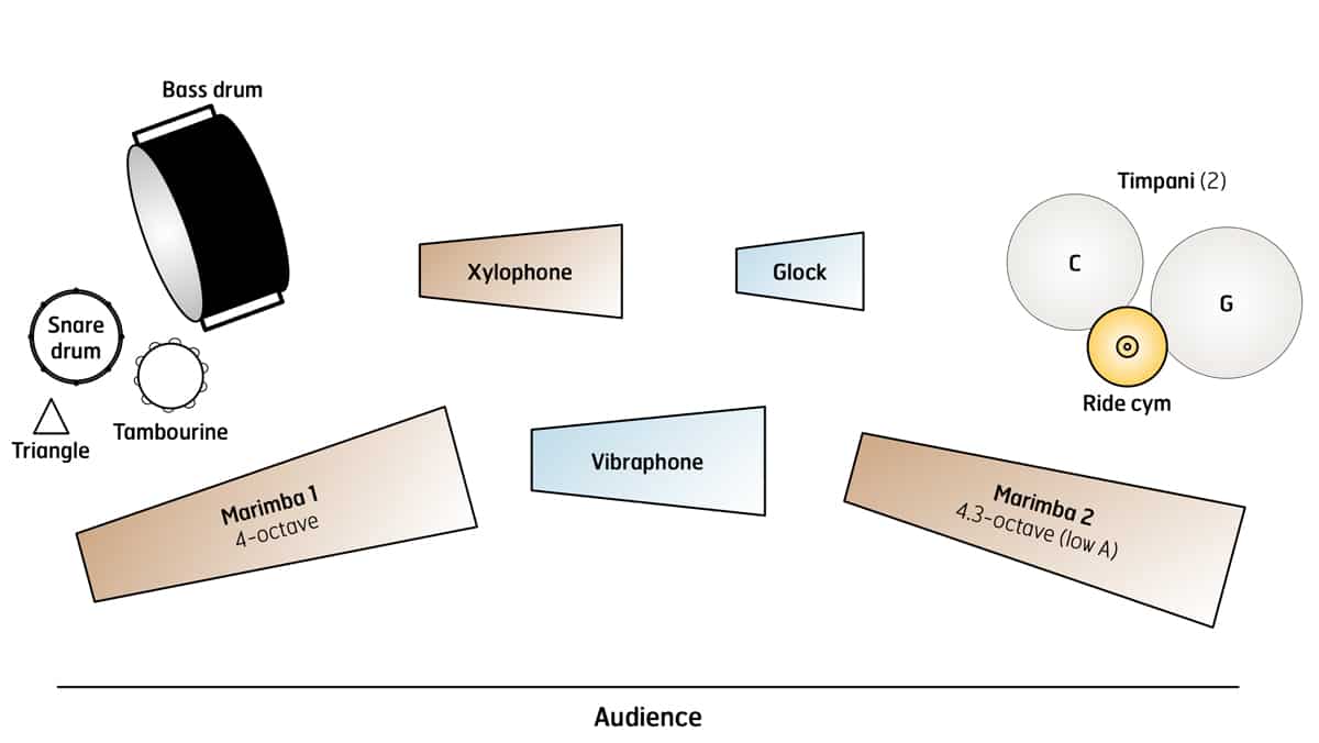 The work has a moderate range of difficulty among the parts, but nothing is unattainable for an experienced middle-school ensemble. The keyboard parts are fun, but not overly elaborate; the same can be said for the drums. This piece works well for a young percussion octet and has theoretical pedagogical value built-in: discussions on motivic development and form can enrich the experience of the performers. “Dayspring” is light, fun, and energetic throughout.