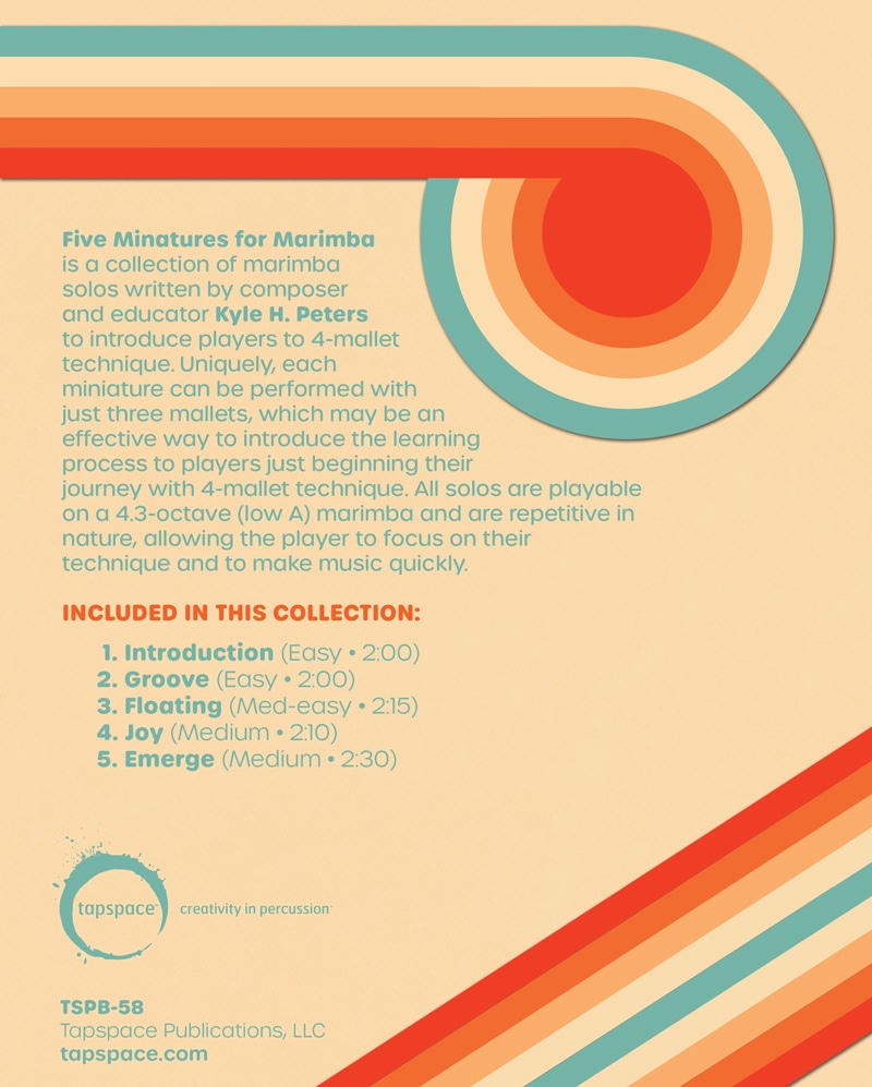 Designed for beginning to intermediate students embarking on their four-mallet journey, a distinctive feature of this collection is that all pieces are playable with either three or four mallets — a helpful option for those new to four-mallet technique. The solos use repetition to encourage players to hone their technique while maximizing their musicality.