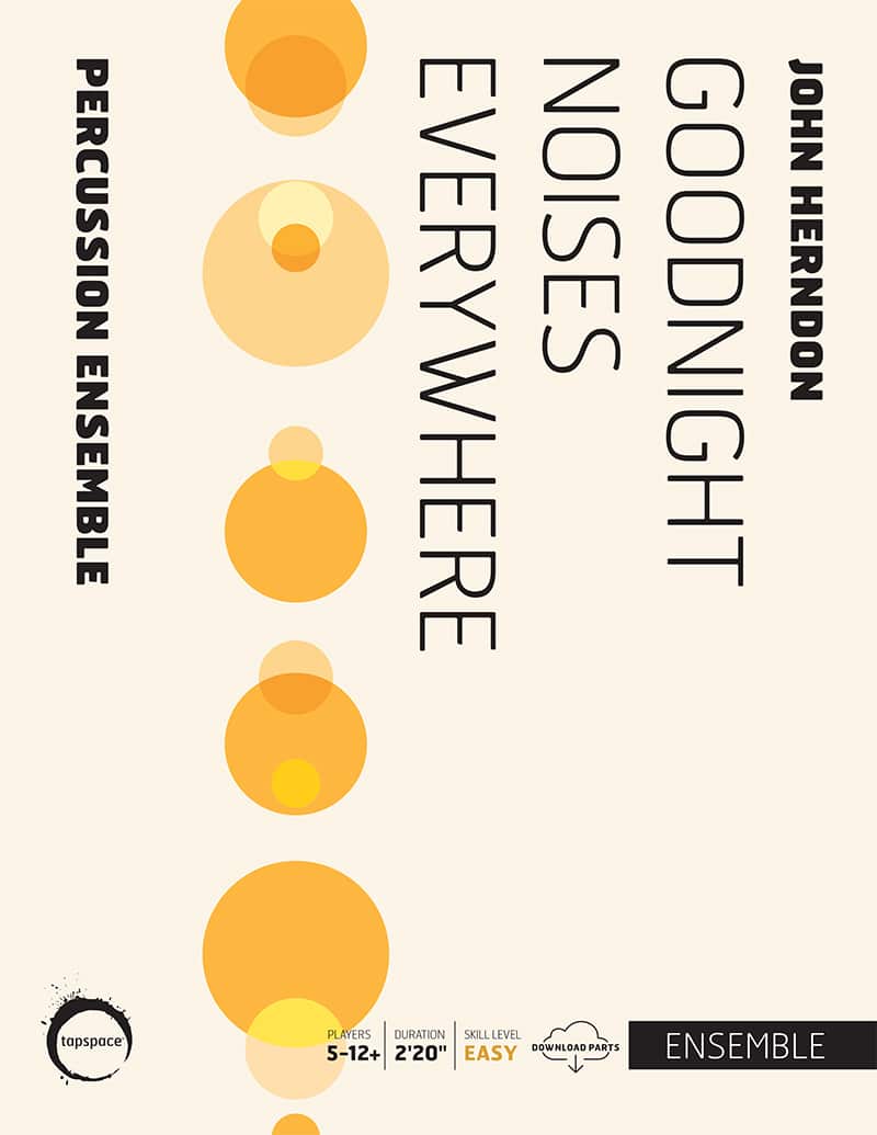 Goodnight Noises Everywhere by John Herndon is a percussion ensemble piece inspired by the closing lines of Margaret Wise Brown’s beloved children’s book Goodnight Moon. Written as a lullaby for sounds, the piece uses soft textures, resonant colors, and graceful motion to capture the quiet wonder of nighttime.