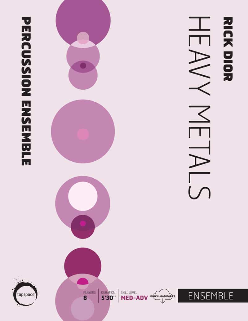 Rick Dior’s Heavy Metals is a fun, exciting percussion ensemble filled with clanging groove! Taking its title from the various all-metal instrumentation, this piece requires not only a large array of unique instruments and objects, but a deep sense of groove across the ensemble. Dior recommends that the piece be performed in a theatrical and over-the-top manner with lots of body movement from the performers. He also recommends that performers should feel free to improvise on any metal objects nearby including music stands, cymbal stands, or stage rigging. Because Heavy Metals is scored for such specialized instruments, several instrument substitutions are listed in the piece and according to Mr. Dior, the piece “can be customized with any metal items available.”