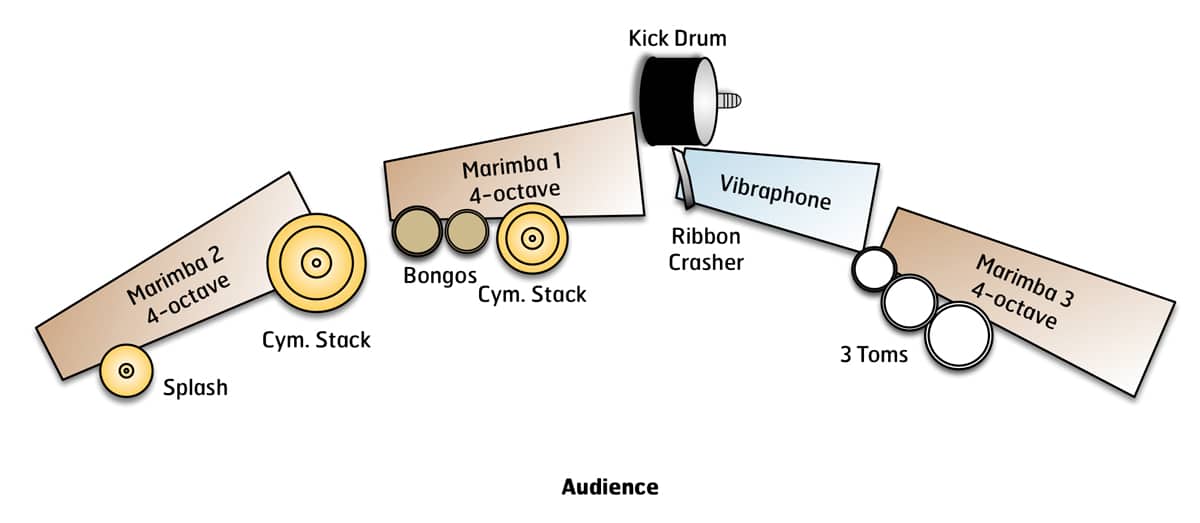 • 3 marimbas—4-octave