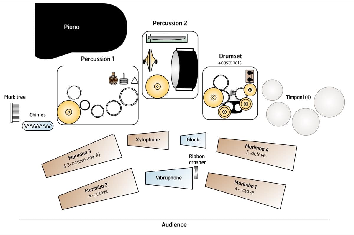 • Accessories cabasa, castanets, mark tree, ribbon crasher, shekere, tambourine, triangle