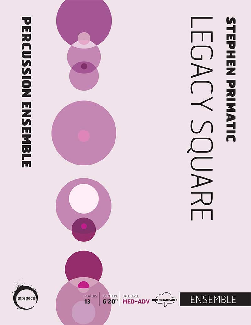 Legacy Square by Stephen Primatic is a spirited work for large percussion ensemble in three main sections — a rousing opening, mysterioso middle section, and groove-based third section — ending with a reprise of the opening material.
