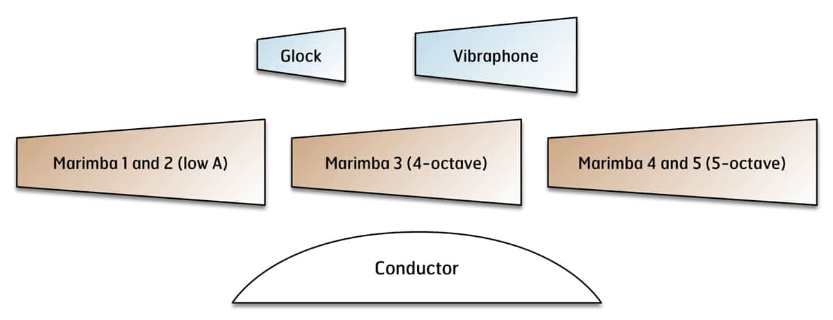 - 3 marimbas—(1) 4-octave, (1) low A, (1) low C