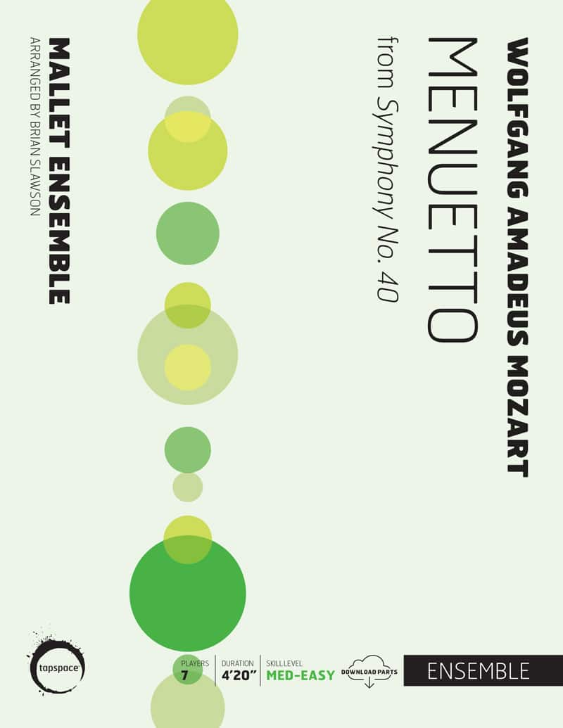 Having grown tired of fulfilling the musical whims of others, Mozart’s late works, including his stunningly emotional Requiem, fostered a new age of self-expression in music. Completed on July 25, 1788, the 40th Symphony is considered by many to be his symphonic masterpiece. Arranged for mallet septet, Brian Slawson‘s arrangement is a great way for percussion ensembles to bring some of Mozart’s mastery to life in a new way.