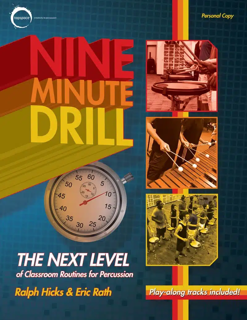 It is rare to come across a classroom method book that so clearly, concisely, and thoroughly covers the basics of what a student needs to know. Nine Minute Drill doesn’t just cover technique, rhythm, and reading skills for practice pad and mallet percussion, it also covers musicality, listening skills, body placement, and some music theory.