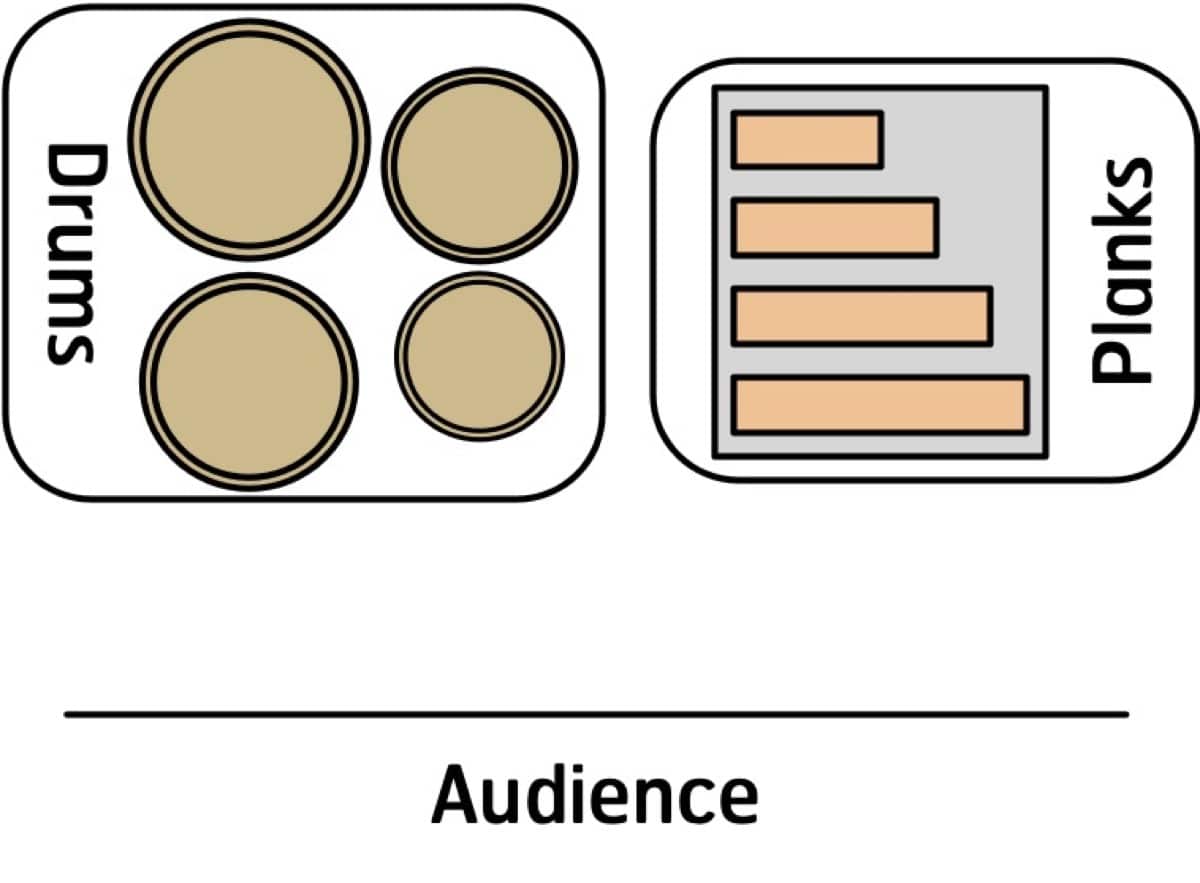 - 4 Wood planks (may substitute with temple blocks or wood blocks)