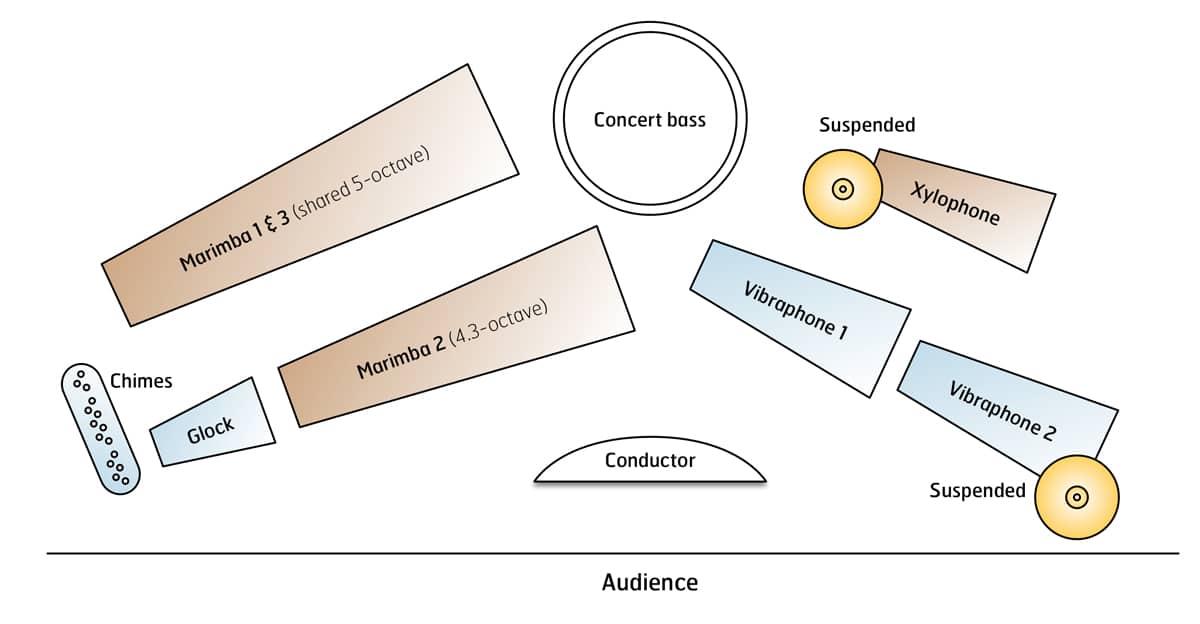 - 2 marimbas—(1) low A, (1) low C
