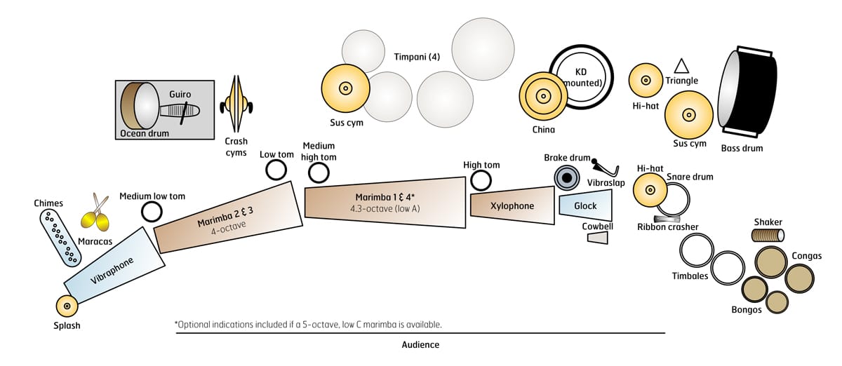 - 2 marimbas — (1) 4-octave, (1) low A w/optional low C indications