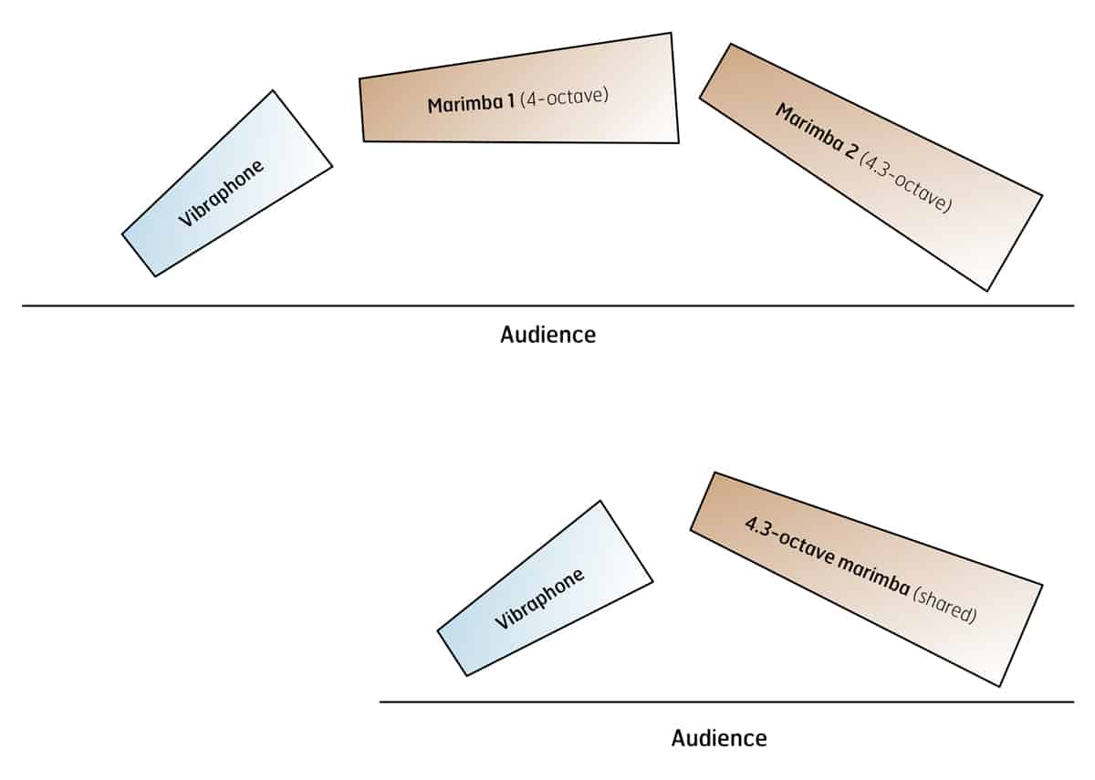 *If only one marimba is available, both marimba players may share a low A marimba. The two marimba parts never intersect.