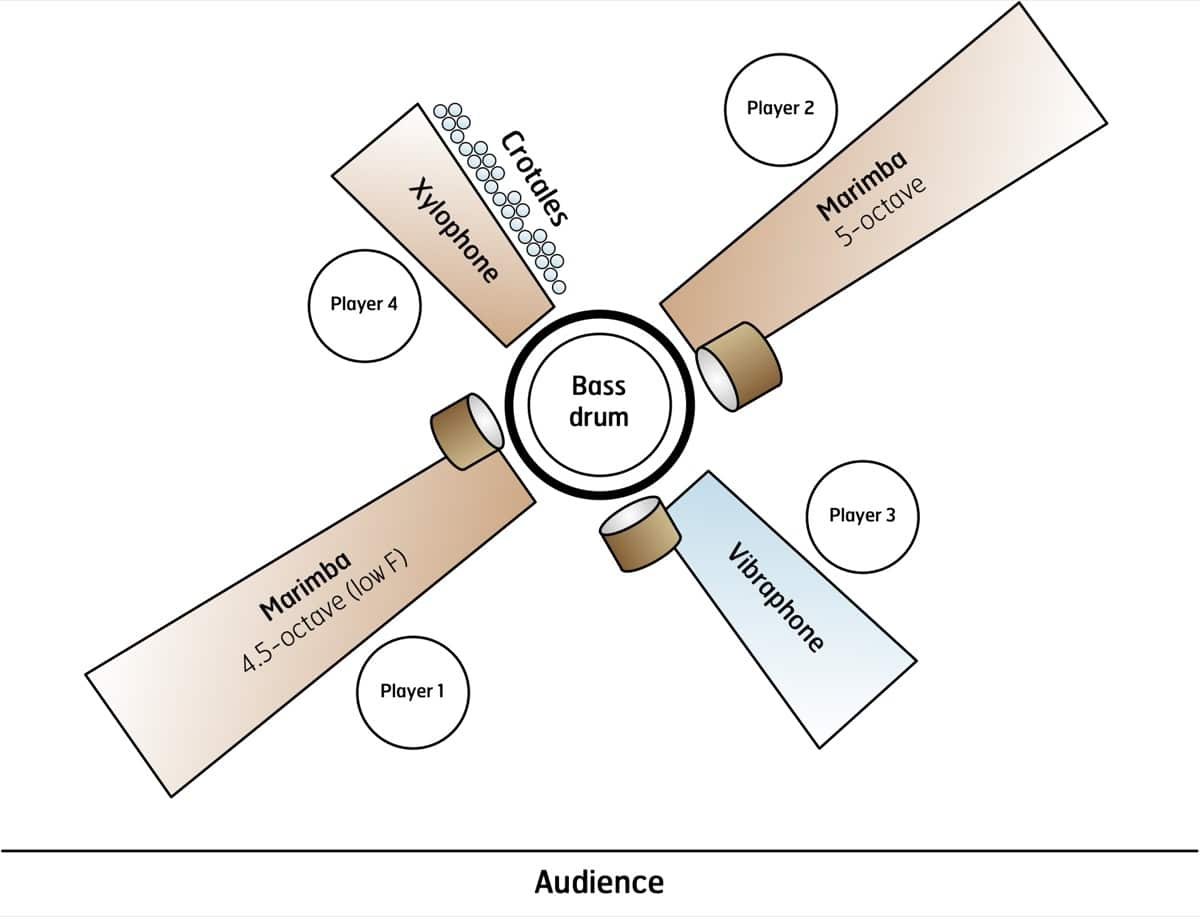 - 2 Marimbas — (1) low F, (1) 5-octave