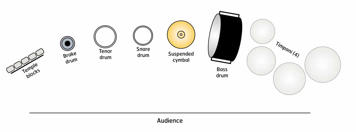 - Drums (snare drum, tenor drum, bass drum)