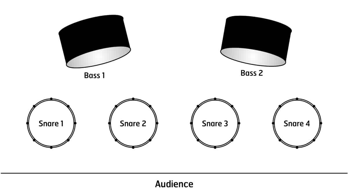 Originally written by Tim Perry for The United States Army Band, Trackin’ is a rudimental percussion ensemble piece for six drummers. It calls for 4 snare drums and 2 bass drums of any style. Whether concert, marching, or rope drums, it is entirely up to the performers and their desired tastes.
