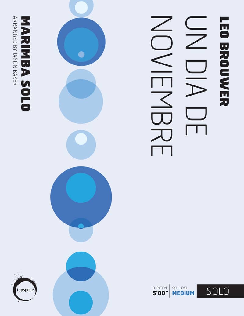 Originally written for solo guitar, Un Dia de Noviembre is a marimba transcription of a very popular piece by Cuban composer Leo Brouwer. It is performed with four mallets on a 4.5 (low E) octave marimba. This piece has a lyrical and simplistic beauty that will require a sense of maturity in musical phrasing from the performer. The accompaniment alternates between the right and left hands throughout and occasionally requires one-handed rolls from each hand at different points. By way of natural chord voicings and intuitive playing patterns, Jason Baker has done a masterful job of capturing the heart of the original work through the marimba’s expressive range.