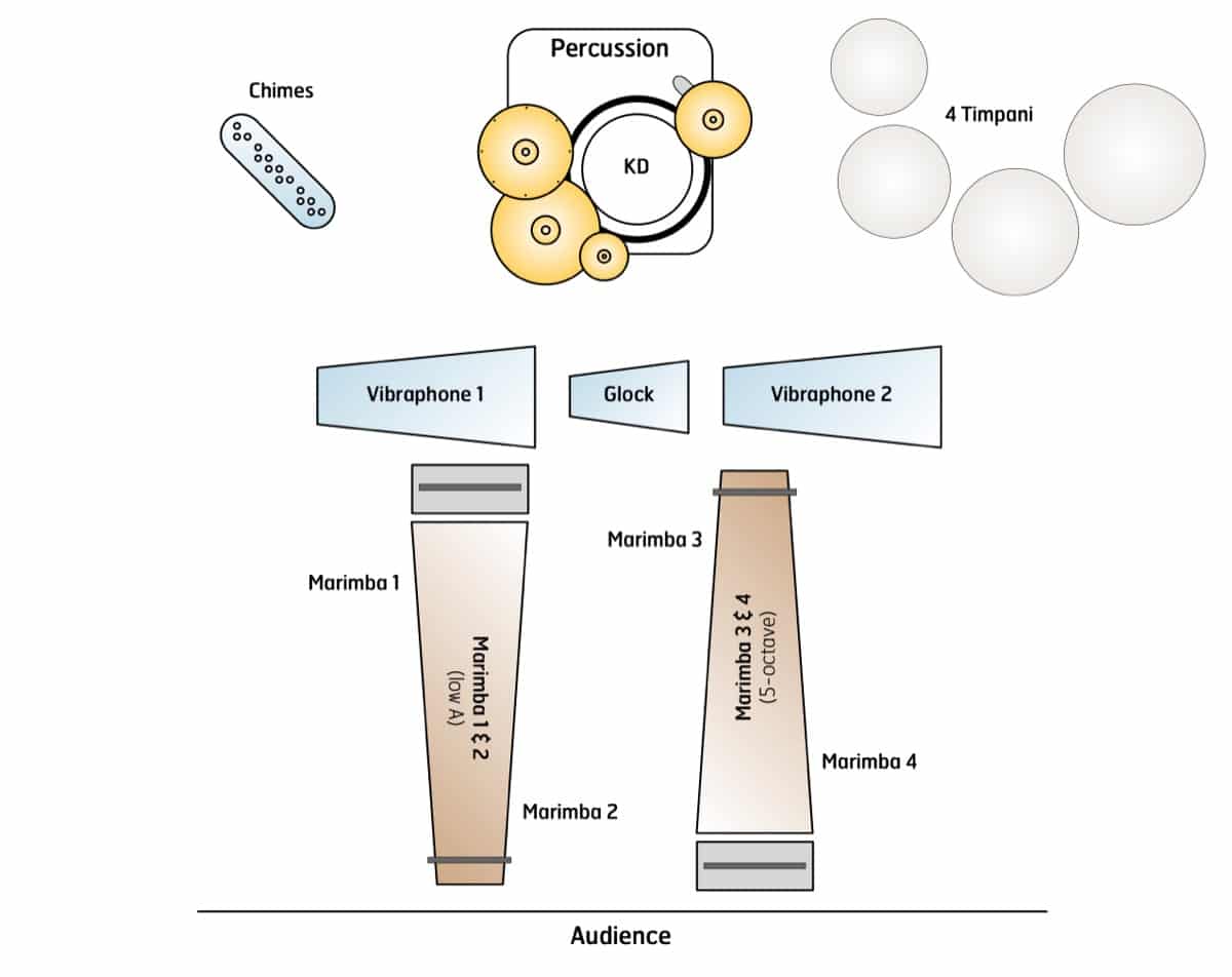 • 2 Marimbas — (1) low A, (1) 5-octave